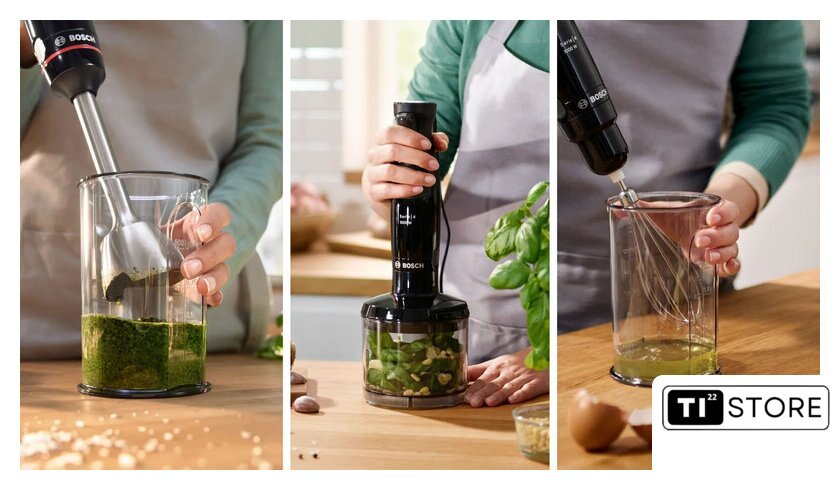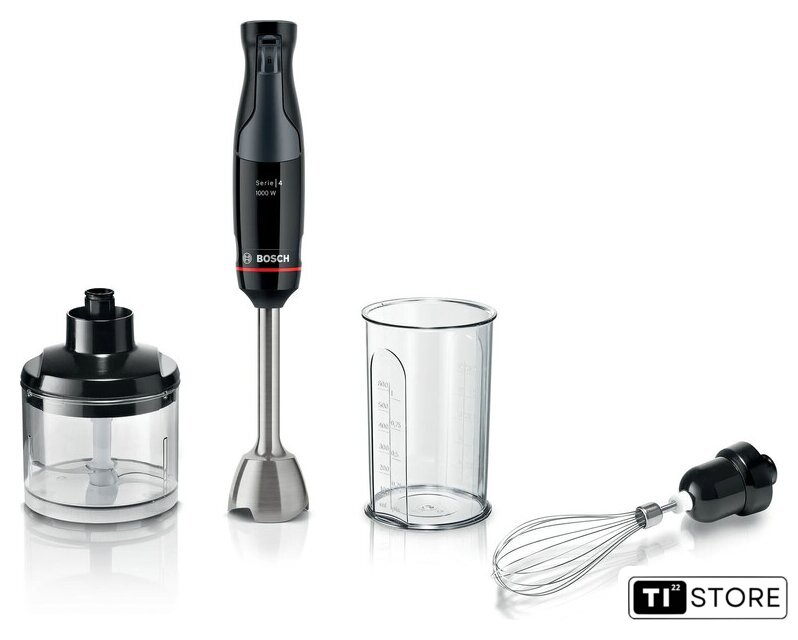 | Комплектация | Блендер из нержавеющей стали с ножем QuattroBladeИзмельчитель для специй, орехов, сыра, мяса и многого другого (полезный объем 500 мл)Венчик из нержавеющей стали для взбивания сливок или яичного белкаМерный стакан в комплекте |