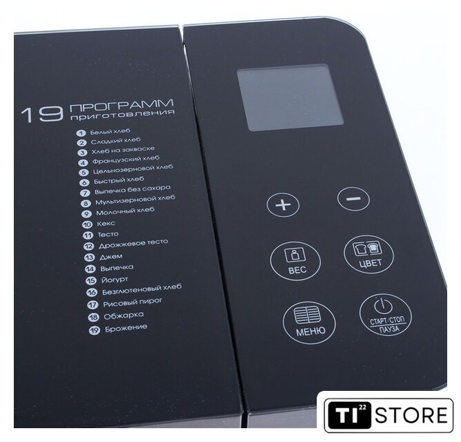 | Основные программы | безглютеновая выпечка, белый хлеб, варенье, кекс, сладкая выпечка, французский багет, цельнозерновой хлеб |
