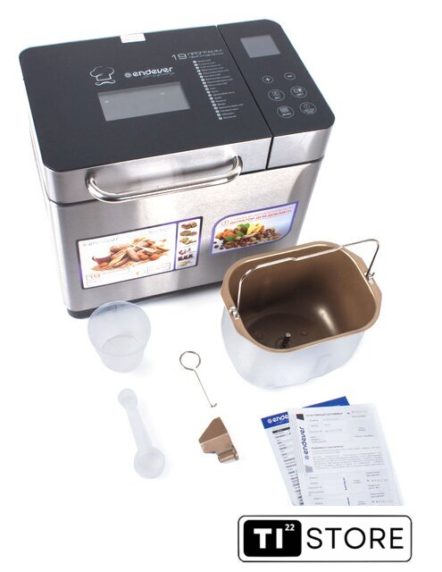 | Комплект поставки | Антипригарная ёмкость для выпечки Мерный стаканМерная ложкаЛопасть для замешивания тестаКрюк для извлечения лопасти Руководство по эксплуатации |