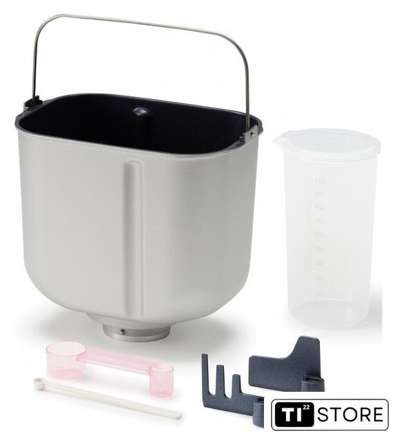| Комплект поставки | - хлебопечь;- чаша для выпечки;- лопатки для замеса теста;- мерная ложка 2 шт;- мерный стакан. |