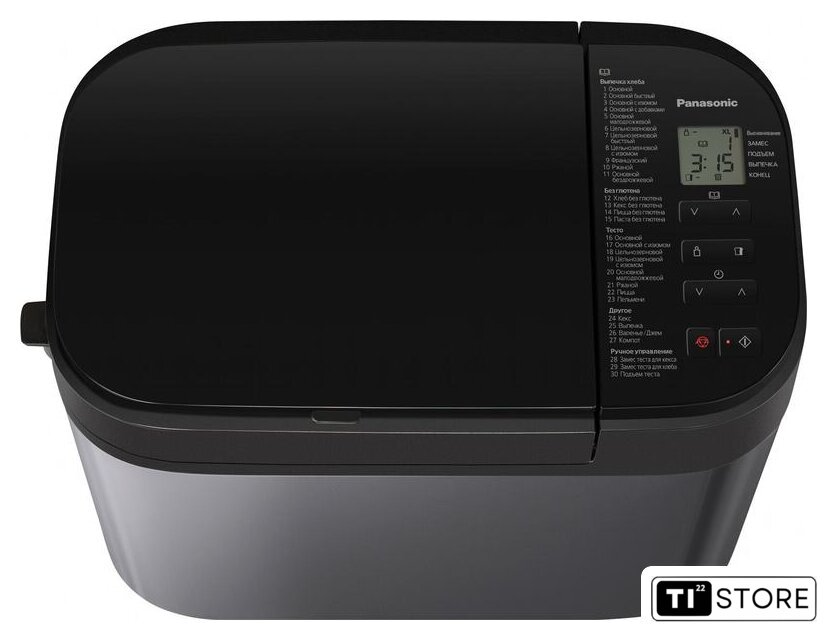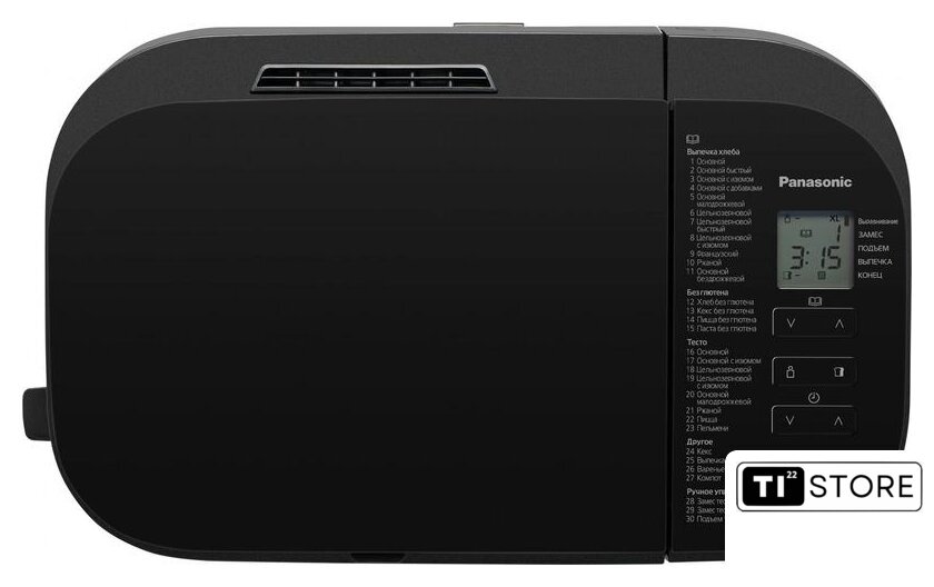 | Перечень режимов работы | Авто меню (Хлеб):1. Основной2. Основной быстрый3. Основной с изюмом4. Основной с добавками5. Основной малодрожжевой6. Цельнозерновой7. Цельнозерновой быстрый8. Цельнозерновой с изюмом9. Французский10. Ржаной11. Основной бездрожжевойАвто меню (Без глютена):12. Хлеб без глютена13. Кекс без глютена14. Пицца без глютена15. Паста без глютенаАвто меню (Тесто):16. Основной17. Основной с изюмом18. Цельнозерновой19. Цельнозерновой с изюмом20. Основной малодрожжевой21. Ржаной22. Пицца23. ПельмениАвто меню (Другое):24. Кекс25. Выпечка26. Варенье/Джем27. Фрукты в сиропеАвто меню (Ручное управление):28. Замес теста для кекса29. Замес теста для хлеба30. Подъем теста |