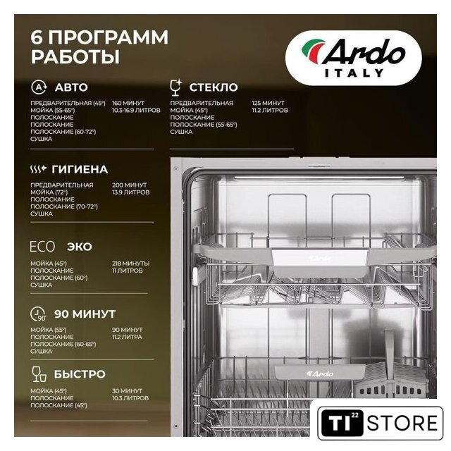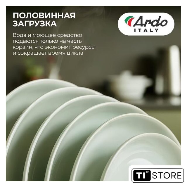 | Дополнительные опции | дополнительная сушка, усиление интенсивности мойки (гигиеническая мойка), половинная загрузка (экономия воды) |