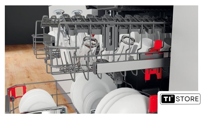 Особенности верхней корзины | регулировка положения по высоте, держатели для бокалов |