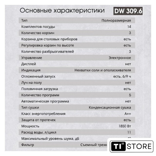 | Максимальная загрузка (комплекты посуды) | 14 |