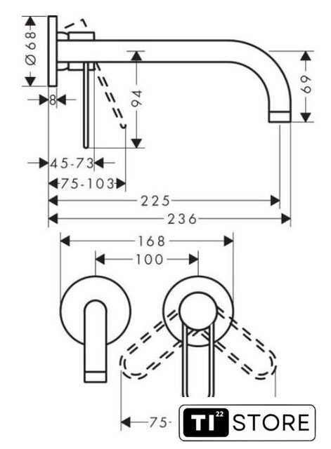 | Длина (вылет) излива | 225 мм |