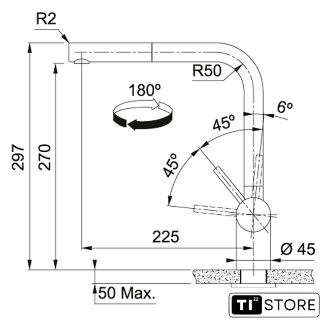 | Поворотный излив | 180 ° |