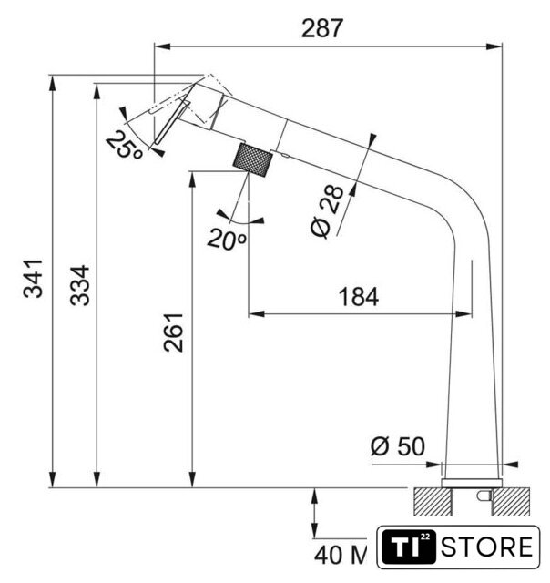 | Высота излива | 261 мм |