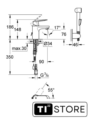 | Длина (вылет) излива | 90 мм |
