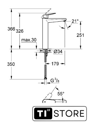 | Длина (вылет) излива | 179 мм |