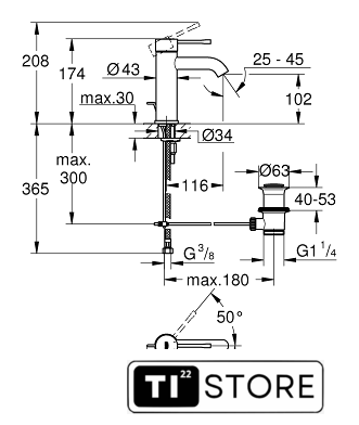 Высота излива | 102 мм |