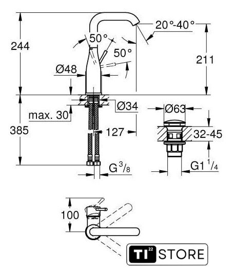 | Высота излива | 211 мм |