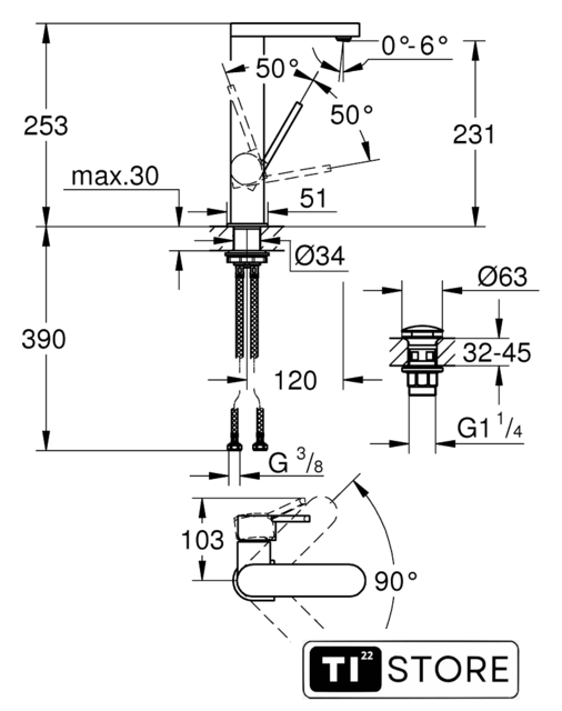 | Поворотный излив | 90 ° |