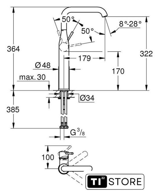 | Высота излива | 322 мм |