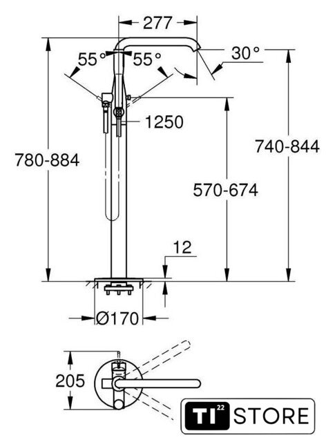 | Высота излива | 740 мм (- 844 мм) |