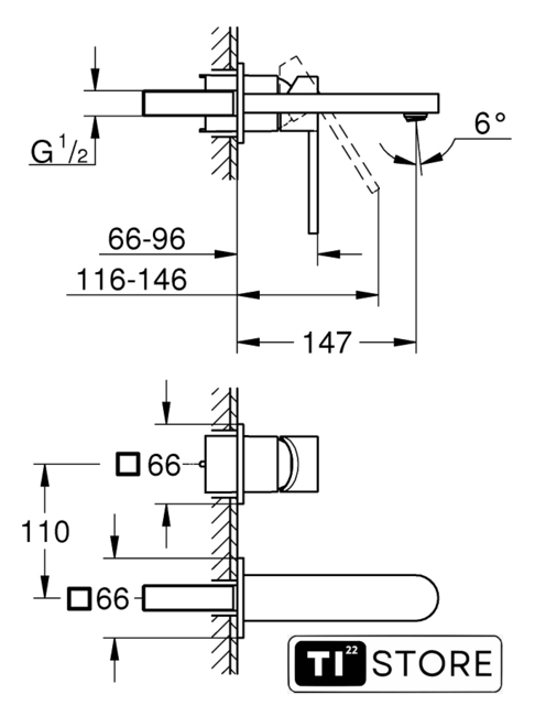 Длина (вылет) излива | 147 мм |