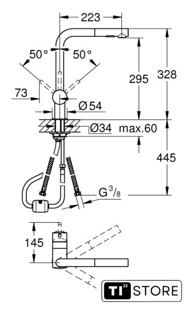Длина (вылет) излива 223 мм