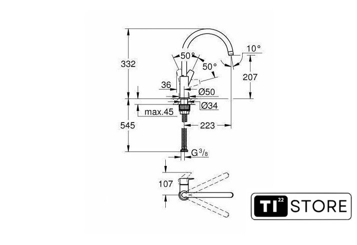 | Поворотный излив | 360 ° |