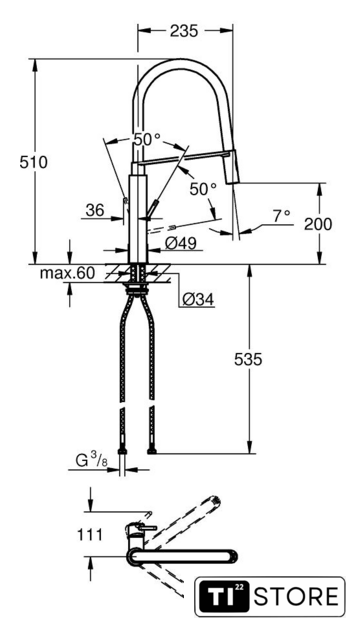 Длина (вылет) излива | 235 мм |