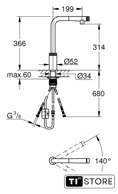 Поворотный излив | 140 ° |