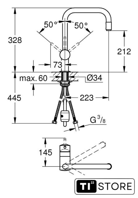 | Поворотный излив | 360 ° |