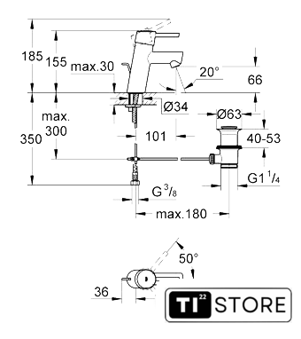| Длина (вылет) излива | 101 мм |