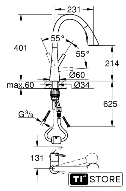 Длина (вылет) излива | 231 мм |