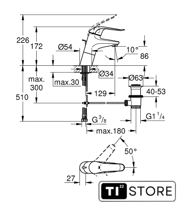 | Длина (вылет) излива | 129 мм |