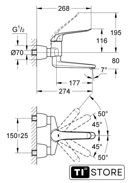 | Длина (вылет) излива | 274 мм |