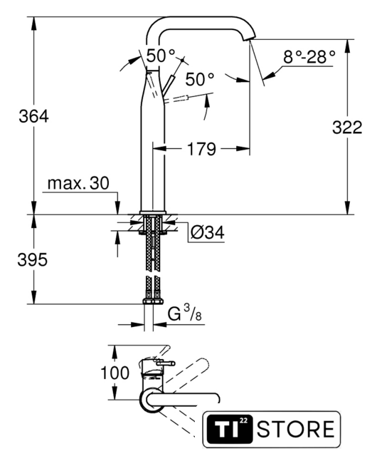 | Высота излива | 322 мм |