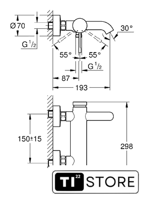 Длина (вылет) излива | 193 мм |