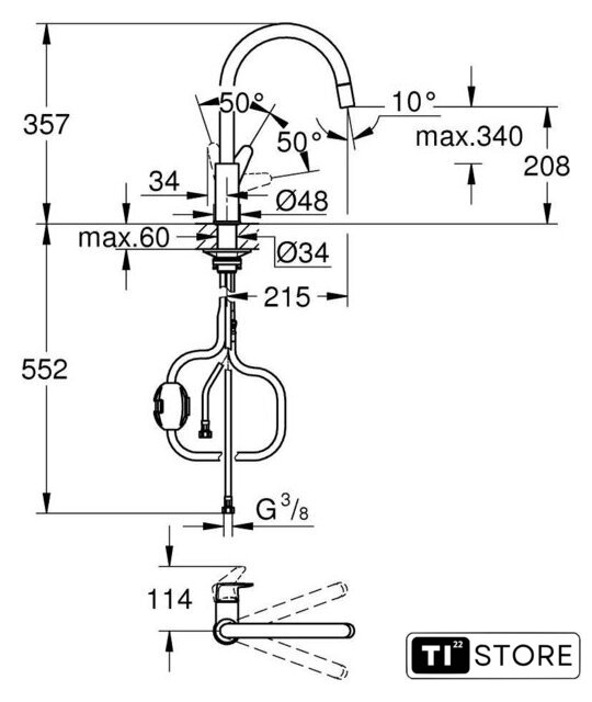 Поворотный излив | 360 ° |