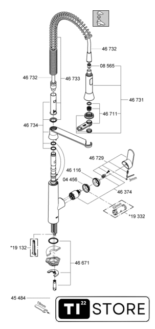 | Выдвижной излив | c душевой лейкой |