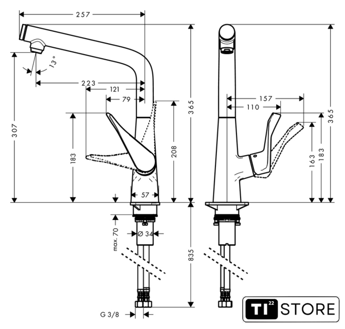 Высота излива | 307 мм |