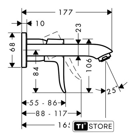| Длина (вылет) излива | 165 мм |