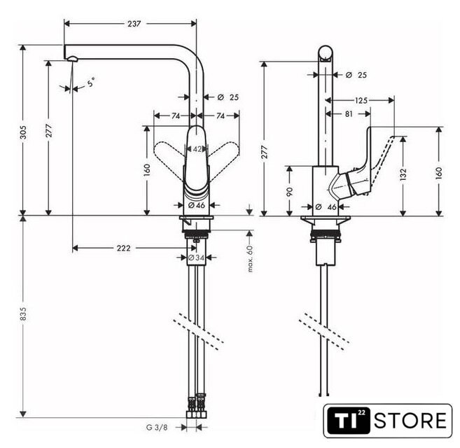 | Длина (вылет) излива | 237 мм |