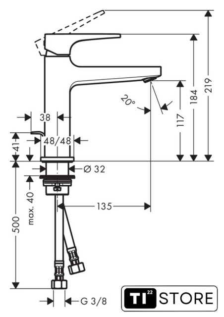 | Длина (вылет) излива | 135 мм |