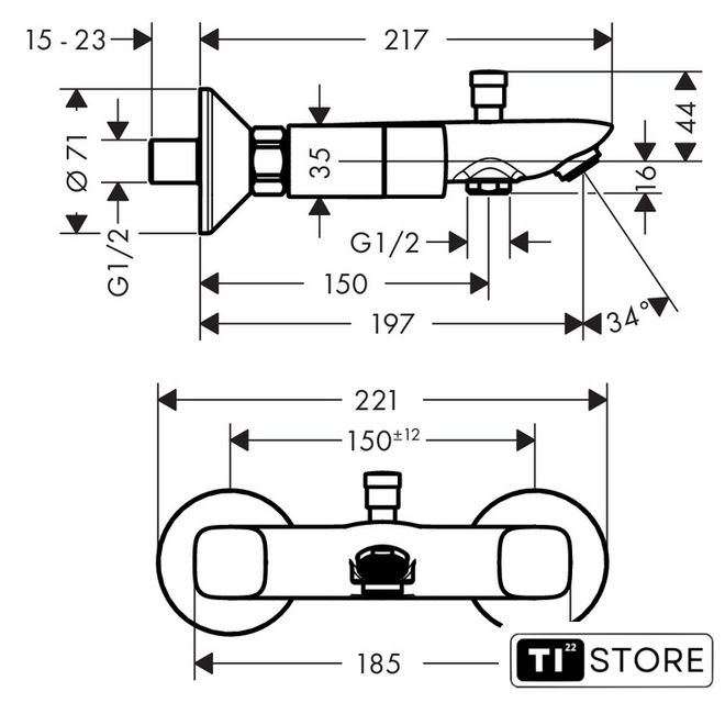 Длина (вылет) излива | 197 мм |