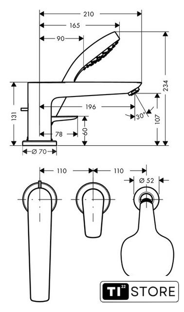 Необходимые части | для смесителя на 3 отверстия на край ванны |