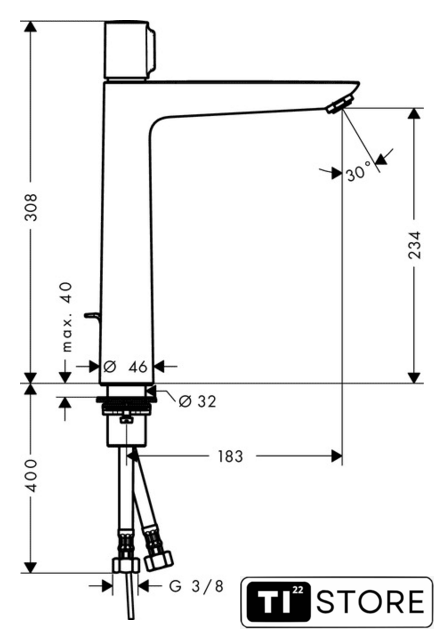 | Длина (вылет) излива | 183 мм |