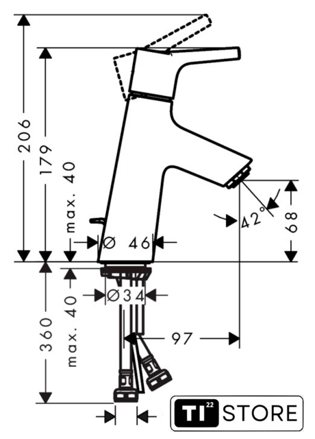 | Длина (вылет) излива | 97 мм |