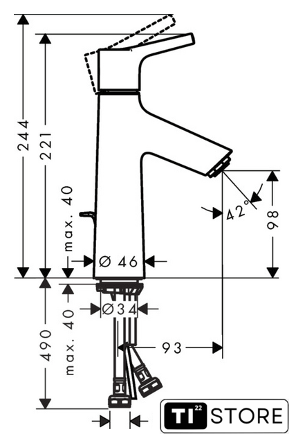 | Длина (вылет) излива | 93 мм |