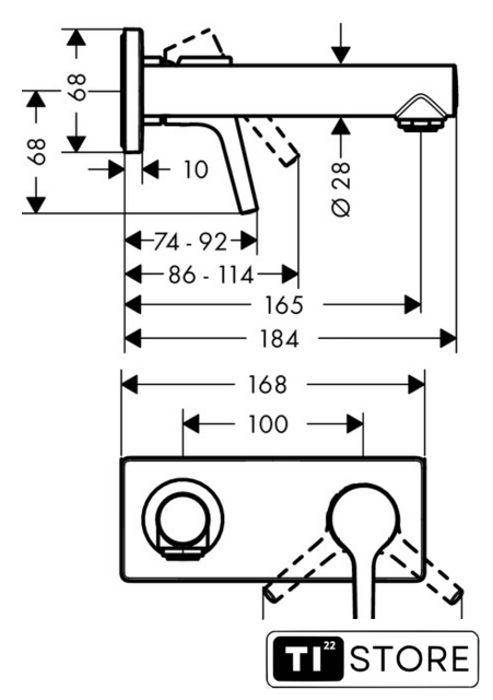 | Длина (вылет) излива | 165 мм |