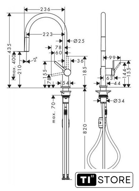 | Высота излива | 210 мм |