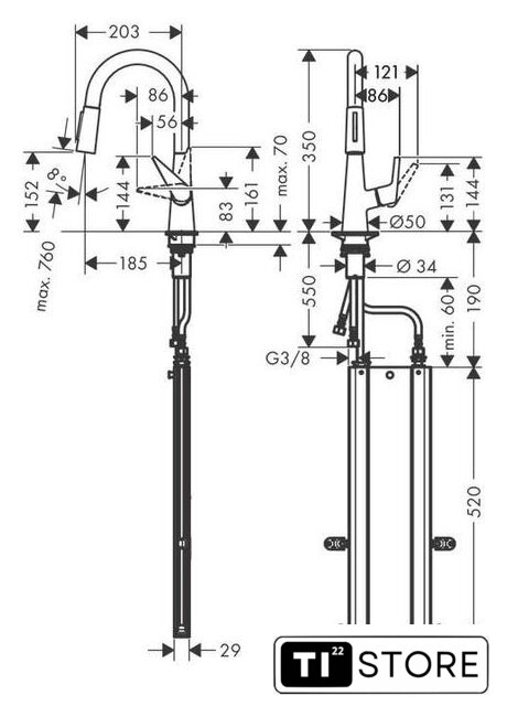 | Высота излива | 152 мм |