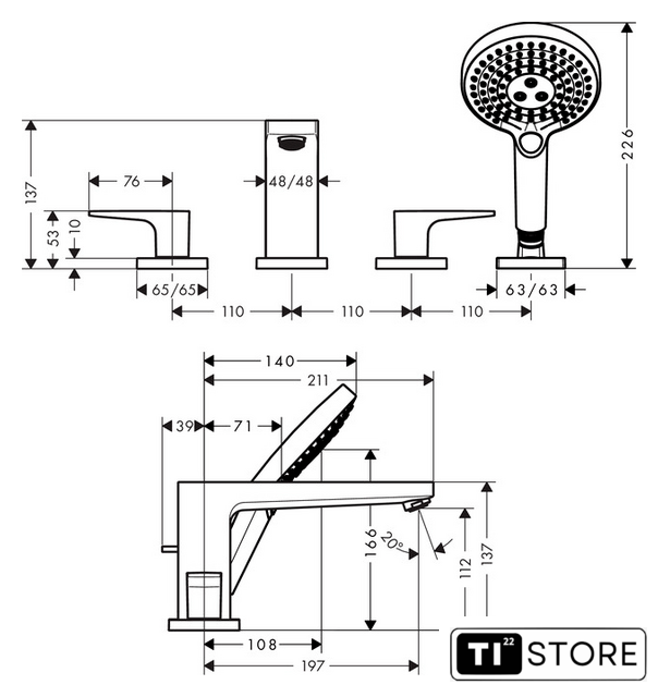Длина (вылет) излива | 197 мм |