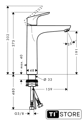 | Высота излива | 191 мм |