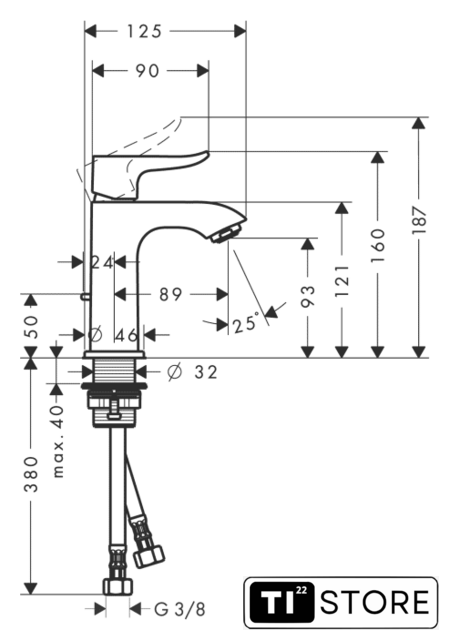 | Длина (вылет) излива | 89 мм |