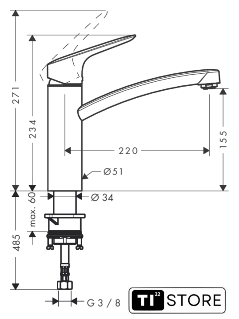 | Длина (вылет) излива | 220 мм |