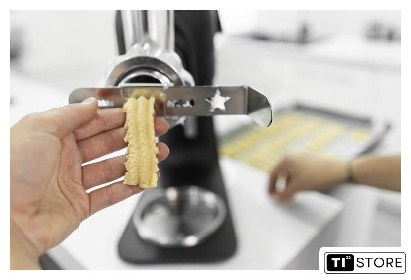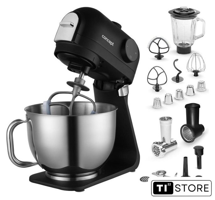 | Полная комплектация | Миска из нержавеющей стали 5 л с ручкой + крышкойВенчикГибкий наконечникМешалкаКрючок для замешиванияМясорубка (3 сменных диска с разной толщиной помола) + аксессуары для фарширования колбас + аксессуары для приготовления печеньяТерка с 5 сменными насадками. |