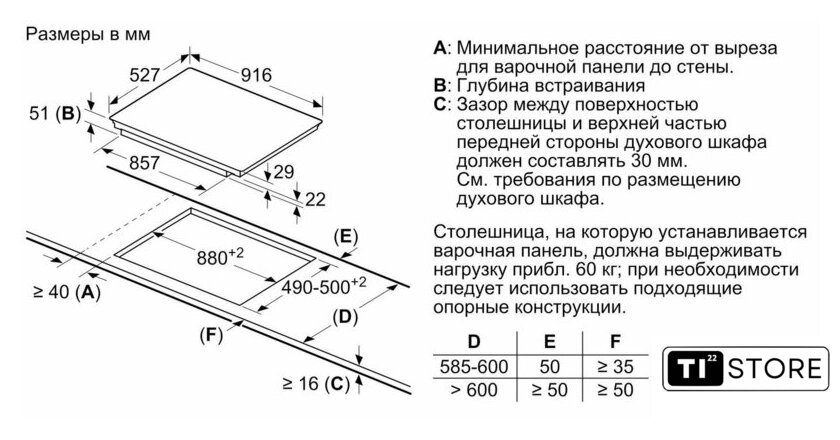 Размеры ниши для встраивания |